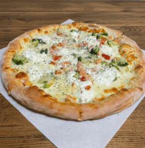 Fresh broccoli light ricotta mozzarella parmesan & sliced fresh tomatoes.